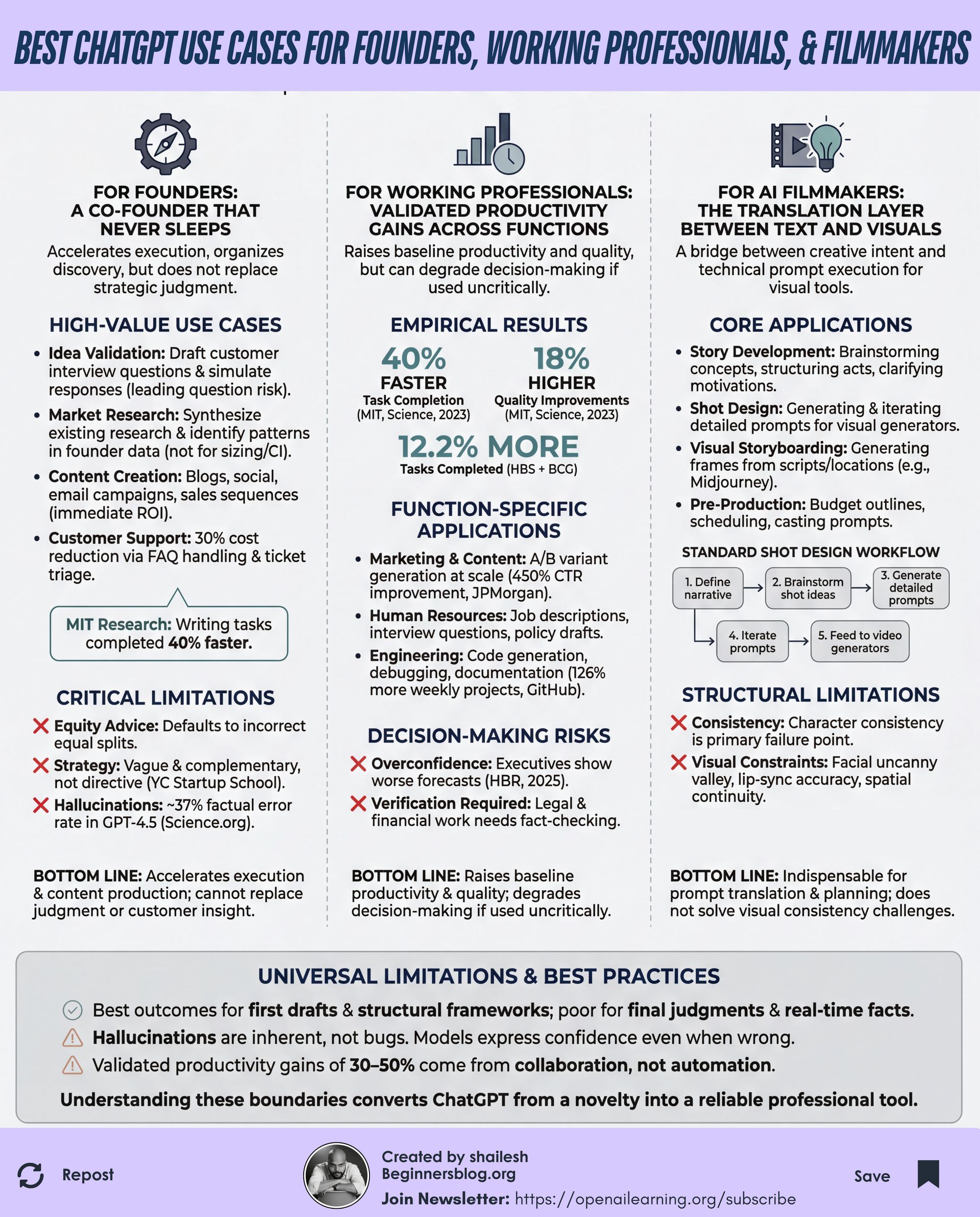 Best ChatGPT Use cases for Founders, Working professionals, and Film makers